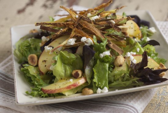 Red RomaBlend® Salad with Frizzled Leeks, Toasted Hazelnuts, Fuji Apples and Chevre